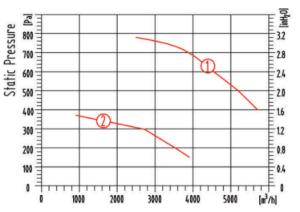 ①技術參數:風輪直徑355mm,由4極和6極額定電壓為230/400V,頻率50Hz三相異步運轉電機組成。最大風量分別為5700m3/h和3900m3/h。