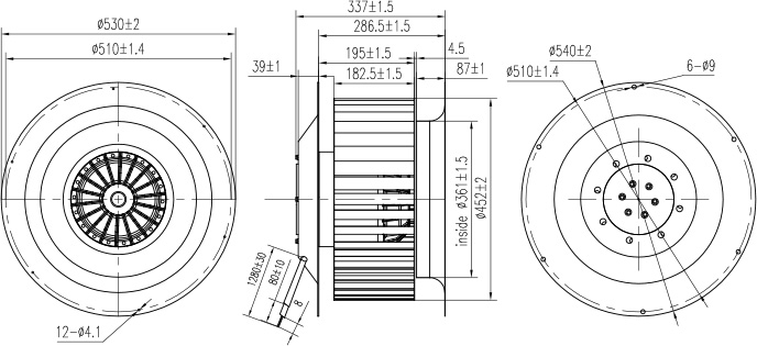 單進風前傾式離心風機根據風機外形可分為蝸殼前傾式離心風機和常規前傾式離心風機兩種。蝸殼前傾式離心風機共有120mm、133mm、140mm、150mm、160mm、180mm等六種。常規前傾式離心風機有200mm、225mm、250mm、280mm、315mm、355mm、400mm、450mm等八種。
