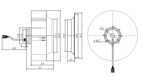 ②組成部件:高效外轉子交流電機、后傾式圓弧形鋁合金葉輪、免維護深溝球滾珠軸承、靜電粉末噴塑轉子。