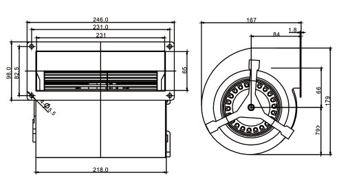 本款產(chǎn)品為2極或4極雙進(jìn)風(fēng)蝸殼離心風(fēng)機(jī)。額定電壓為230V,額定電流從0.33
